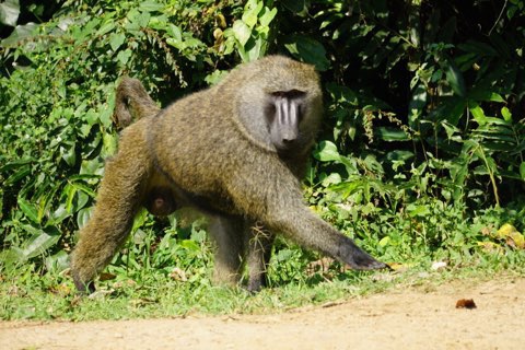 It was kind of sad when our trek came to a close, but we both agreed this was definitely an adventure to remember. And it made us even more excited for the gorilla trek later on in the week! After getting back to the base site, we got a certificate for completing a successful tracking. And our guide let us take a pic with her! Leaving the forest we ran into a bunch of baboons on the roads and even saw a couple of babies. They are like the bison of Yellowstone and are just constantly on the sides of the roads and will try to get into your car if they see any signs of food.
