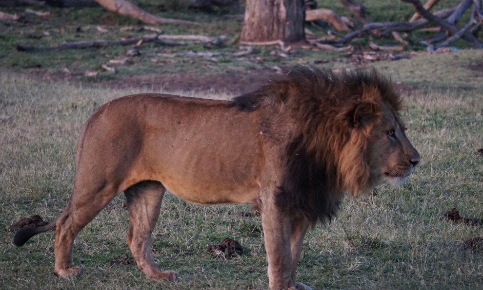 Near the end of our drive we game across three lionesses that were feeding on a zebra they had killed earlier. We were surprised that we had already seen 4 of the Big 5 in the first evening: the lion, elephant, buffalo, and rhino. Mike had told us they call the leopard the “elusive leopard” as it is very hard to spot. They like to spend their time in thick bushes or up in the trees. So it was likely we weren’t going to see her as there was only one in the conservancy. We enjoyed a nice sundowner with some white wine and snacks as we watched giraffes cross the horizon as the sun was setting along with rhinos and Buffalo joining the lions in the meadow. Once we finished our wine, we kept driving along the road and were shocked when we spotted 4 more lions (3 of which were males). They enjoyed a short rest before getting up and moving to a different location. They ended up walking right past our truck as they headed deeper into the forest. It was unreal being so close to these animals that we are only fortunate to see in zoos for the most part. And hearing them roar was also incredible. It was a lot deeper than I expected. We were going to continue to follow them but one lioness was blocking the bridge so it was time for us to turn around and head back to camp.