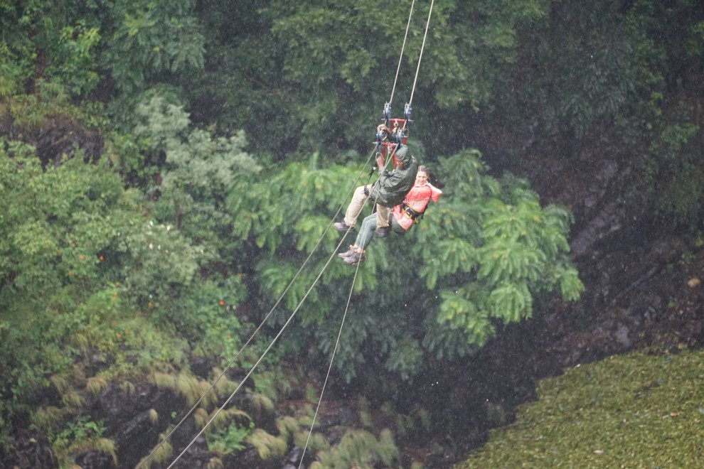 We thankfully were one of the lasts flights up before they shut operations down due to the weather. We thought we weren’t going to be able to do our adventure activities but they surprisingly allowed people to do them in the rain. We headed up to the Lookout Cafe where we signed in for our HighWire Pass which included the Flying Fox, Zipline, and the Gorge Swing. Thankfully we were able to do the Gorge Swing tandem or else I probably would not have taken that leap. As you can tell in the video, I probably bursted Grant’s eardrum during that free fall before we finally started the swing. The worker told us afterwards that he had to shorten the ropes for us or else we would have dipped into the river with our combined weight.