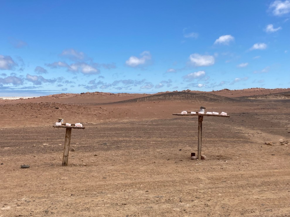 The highway we took, B2, used to be a salt road, and we saw several salt mines as we continued north. They had several small tables of salt crystals that people could take (with a small donation). I didn’t realize how pink some of the crystals would be, but seeing them was pretty cool. We stopped by one section to donate the Namibian coins we had acquired throughout the week (we decided a donation was fine without lugging a hunk of salt around the world with us).