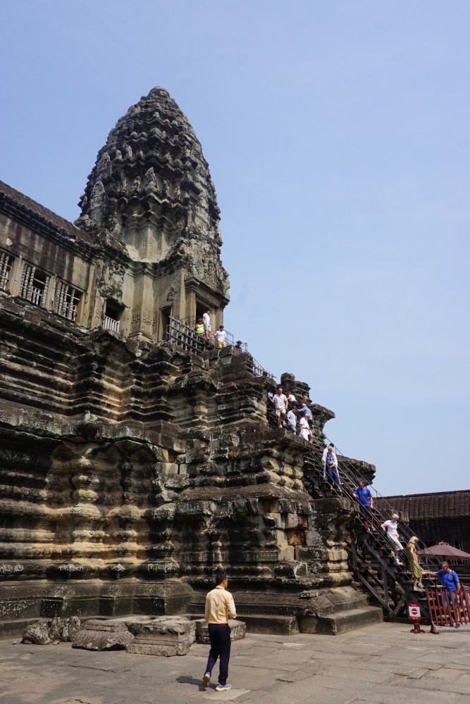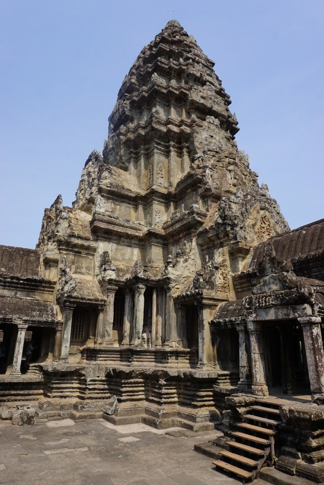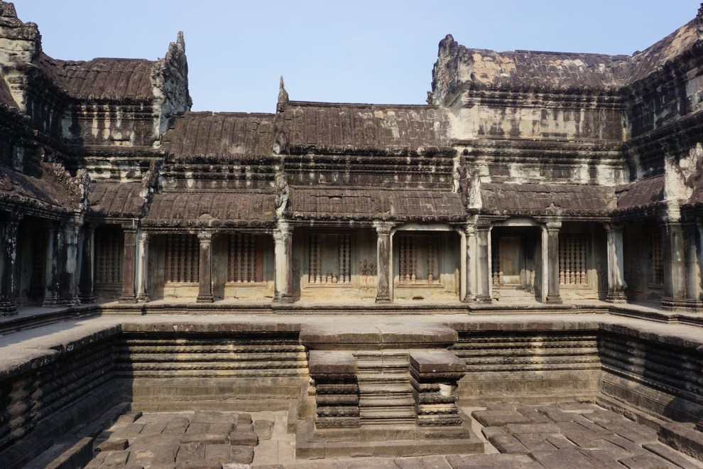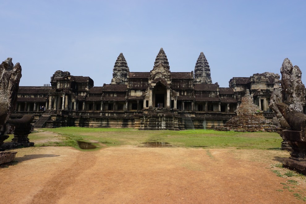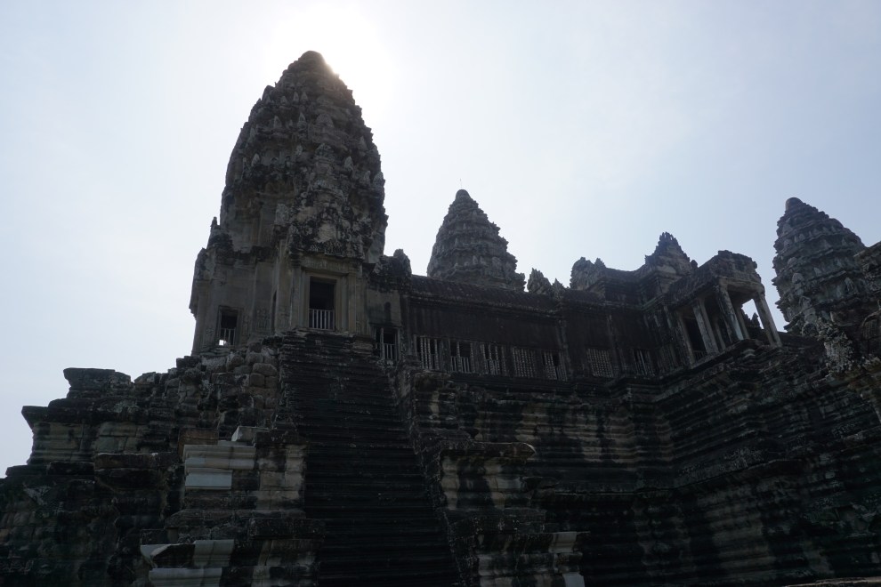 Angkor Wat (the most famous in the complex and “largest religious structure in the world”), originally built for the Hindu Gods but later converted to a Buddhist temple: