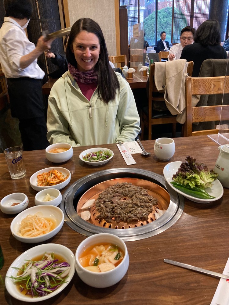 After spending a few hours walking through the museum, we were ready for some dinner. Sebastian had given us his recommendation for the best bulgogi in town. And let me tell you, it was! So much so that Grant wanted to order another helping of it (but we didn’t). It was also some of the best kimchi we’ve had. We think they may have used the red pepper paste to help flavor it. The sides in Korea are unlimited so I was happy when the waitress supplied us with more kimchi.