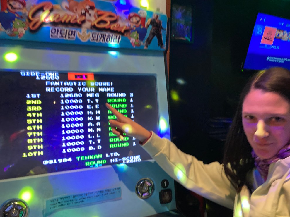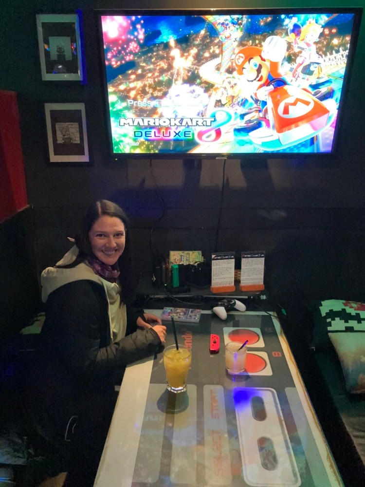 We initially were going to grab dessert around the area, but Grant wanted to check out this retro game bar in a different part of town. When we first arrived, we were the only ones besides the bartender. They had a Nintendo Switch, Playstation, and Xbox along with some card, board games, and arcade games. We tried to play a couple games on the Playstation and Switch but couldn’t get them to work so ended up playing a couple rounds of Jenga. As the night progressed, more people started showing up and the bartender helped to get the gaming systems up and running. We ended up playing Fifa Soccer (which we were terrible at), MarioKart along with Mortal Kombat and BombJack on the arcade machine.